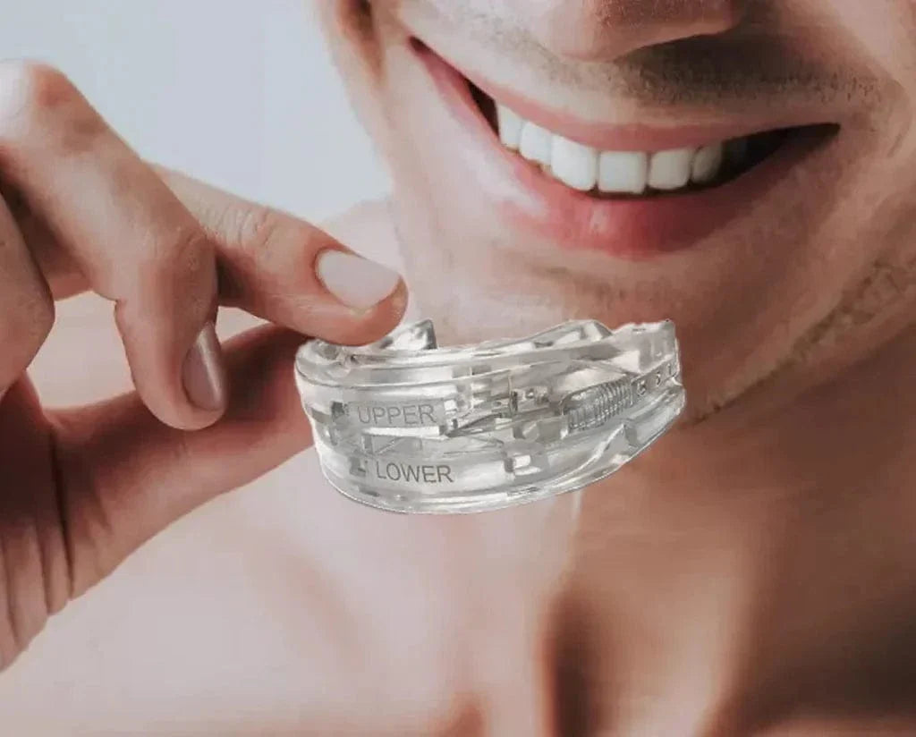 Ayarlanabilir Anti-Horlama Ağızlığı™, gece yatmadan önce kolayca takabileceğiniz küçük ama etkili bir cihazdır. Çenenizi öne doğru konumlandırarak hava yolunuzu açar ve horlamayı fiziksel olarak imkânsız hale getirir.